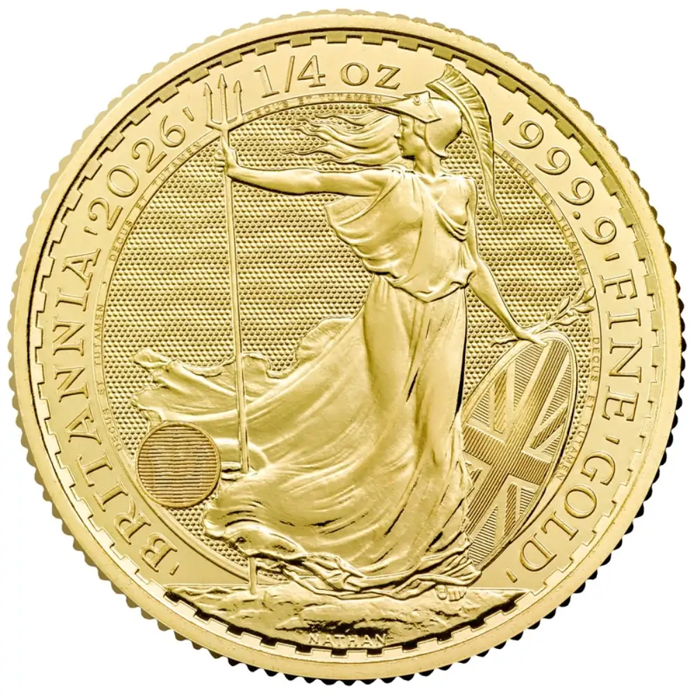 Utsolgt2026 Storbritannia 1/4 oz Gull Britannia BU M/Air-tite Kapsel