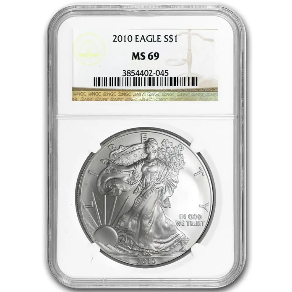 Spot +400,-kr 926,56Utsolgt2010 USA 1 oz Sølv American Silver Eagle NGC MS69