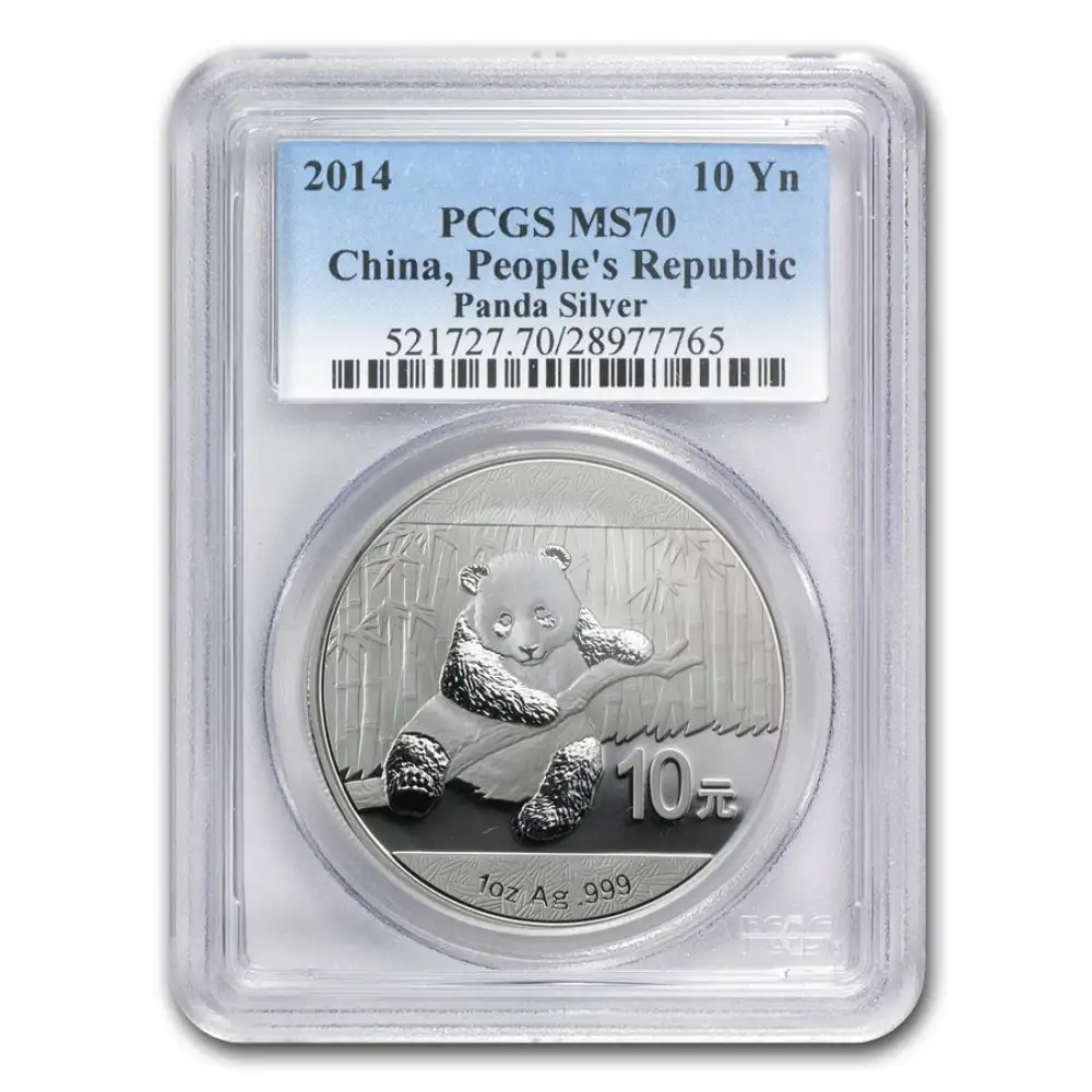 Spot +200,-kr 726,56Utsolgt2014 Kina 1 oz Sølv Panda PCGS MS70