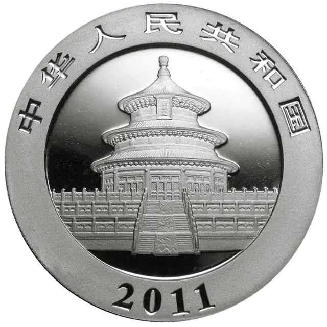 En vakker og ettertraktet utgave i den populære Panda-serien fra Kina. Mynten inneholder 1 troy ounce (31,1 gram) rent sølv (.999) og er delvis forgylt med 24 karat gull, som fremhever motivet av mor og pandaunge på en elegant måte. Forsiden viser det ikoniske Temple of Heaven i Beijing, med teksten People’s Republic of China og årstallet 2011.