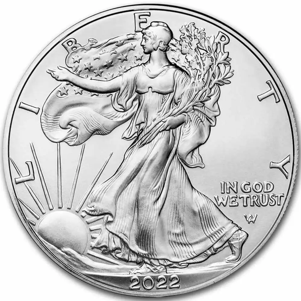2022-utgaven inneholder 1 troy ounce .999 rent sølv og bærer det ikoniske Walking Liberty-motivet på forsiden, designet av Adolph A. Weinman.