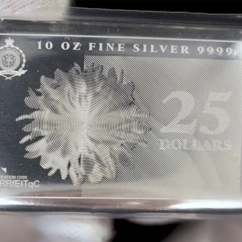 Nydelig og stor sølvbarre-mynt med et spennende design, inspirert av en seddel. Sølvbarren er individuelt nummerert og vakuum-forseglet i en egen plastlomme med pappomslag. Denne barren er et gyldig betalingsmiddel og selges derfor uten mva. Meget populær hos sølvinvestorer og myntsamlere. Begrenset opplag
