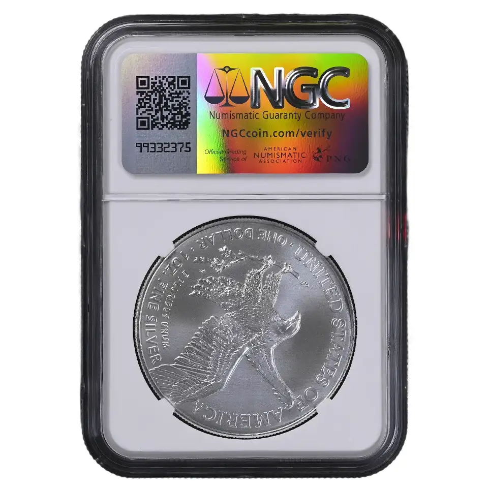 Her får du en ettertraktet 2024-utgave av American Silver Eagle-mynten, produsert ved West Point-anlegget og innkapslet i NGC-slab med “Early Releases” (ER)-merke og eksklusiv “Made in The USA” label. Mynten er gradert MS-69 — nær perfekt stand — og dermed et svært sterkt objekt for både samlere og investorer.
